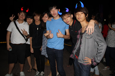 Spooktacular @ Sentosa last night, well it was fun but not as scary as night safari. I kinda felt that the ghost inside the ghost house looks like avatar though......hahahaha. Couldn't stop laughing with ah pui ( TS ) in the 1st ghost house since I was grabbing on to his arm so so so so so tight. I was trying to see what the ghost's faces were like and it turned out funny hahahahahahaha. But Beenting got so scared then she fell to the floor pulling manplex down and we were behind laughing our asses off hiak hiak hiak!!!